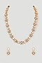 Featuring a gold finish long necklace studded with white kundan polki, set in mixed metal. It is paired with a matching pair of earrings.