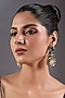 Featuring a pair of gold finish dangler earrings studded with zircons, moissanite kundan polki and emerald stones, set in mixed metal. Perfect for grand occasions like weddings and traditional festivities.