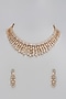 Featuring a gold finish necklace studded with zircons, set in mixed metal. It is paired with a matching pair of earrings. Perfect wear for festive occasions or wedding ceremonies.