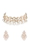 Featuring a 18 Kt gold plated necklace studded with pearl droplets, set in mixed metal. It is paired with a matching pair of earrings.