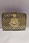 Featuring a green and gold clutch in metal base with kundan and sequins embroidery.