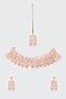 Featuring a rose gold finish choker necklace studded with zircons, set in mixed metal. It is paired with a matching pair of earrings and maang tikka.