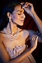 Featuring a rose gold finish layered necklace studded with zircons, set in mixed metal. It is paired with a matching pair of earrings.