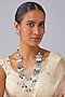 Featuring a silver finish layered long necklace studded with aquamarine stones, beads and zircons, set in mixed metal. It is paired with a matching pair of stud earrings. Perfect wear for festive occasions or wedding ceremonies.