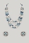 Silver Finish Aqua Marine Stone & Zircon Layered Long Necklace Set
