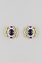 Featuring a pair of silver finish stud earrings studded with blue sapphire, yellow stones and zircons, set in mixed metal. Perfect for festive occasions, weddings or cultural events, this jewellery is a wardrobe must for those who love to shine effortlessly.