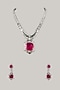 Featuring a silver finish long necklace studded with pink stones, emeralds and zircons, set in mixed metal. It is paired with a matching pair of earrings. Add a touch of sparkle to your ensemble, perfect for wedding ceremonies or festive celebrations.