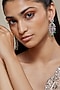 Featuring a pair of silver finish dangler earrings studded with zircons and emerald stones, set in mixed metal. Perfect for weddings, receptions or festive celebrations.