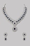 Featuring a white finish long necklace studded with amethyst and zircons, set in mixed metal. It is paired with a matching pair of earrings. Perfect for grand occasions like weddings and traditional festivities.