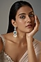 Featuring a pair of white finish dangler earrings studded with aqua stone, pearls and zircons, set in mixed metal. Perfect wear for festive occasions or wedding ceremony.