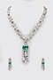 White Finish Aqua Stone & Zircon Long Necklace Set