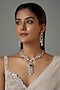 Featuring a white finish long necklace studded with aqua stones and zircons, set in mixed metal. It is paired with a matching pair of earrings. Perfect wear for festive occasions or wedding ceremonies.