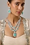 Featuring a white finish layered necklace studded with aquamarine stones and zircons, set in mixed metal. It is paired with a matching pair of earrings. Perfect for grand occasions like weddings and traditional festivities.