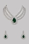 White Finish Emerald Stone & Zircon Layered Necklace Set
