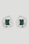 White Finish Emerald Stone & Zircon Stud Earrings