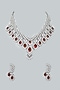 Featuring a white finish necklace studded with zircons and red stones, set in mixed metal. It is paired with a matching pair of earrings.