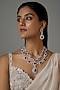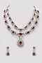 Featuring a white finish layered long necklace studded with red zircons, set in mixed metal. It is paired with a matching pair of earrings. Perfect wear for festive occasions or wedding ceremonies.