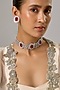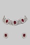 Featuring a white finish choker necklace studded with ruby and zircons, set in mixed metal. It is paired with a matching pair of earrings. Perfect for grand occasions like weddings and traditional festivities.