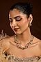 Featuring a white finish choker necklace studded with yellow sapphire zircons, set in mixed metal. It is paired with a matching pair of dangler earrings. This necklace set is a testament to refined taste and timeless style, ideal for festive occasions or wedding ceremonies.