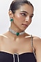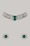 Featuring a white finish choker necklace studded with zircons and emeralds, set in mixed metal. It is paired with a matching pair of earrings. Whether you're wearing a gown or a modern saree, this necklace will add a touch of elegance to your look.