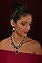 Featuring a white finish long necklace studded with zircons and emerald stone, set in brass. It is paired with a matching pair of earrings. Perfect wear for a wedding or celebration.