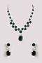 White Finish Zircon & Emerald Stone Long Necklace Set