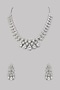 Featuring a white finish necklace studded with zircons, set in mixed metal. It is paired with a matching pair of earrings. Perfect for grand occasions like weddings and traditional festivities.