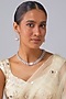 Featuring a white finish necklace studded with zircons and peach opal stone, set in mixed metal. It is paired with a matching pair of dangler earrings. Perfect wear for festive occasions or wedding ceremonies.