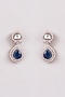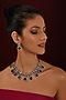 Featuring a white finish choker necklace studded with zircons and sapphire stone, set in brass. It is paired with a matching pair of earrings. Perfect wear for a wedding or celebration.
