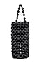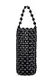 Featuring a black handwoven beaded bottle bag. A perfect accessory for a summer outing.
