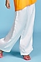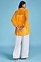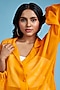 Featuring a mustard oversized shirt in satin base. It is paired with a bralette and palazzo pants. Style it with dangler earrings and heels for vacations.