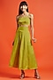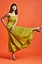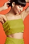 Featuring an olive crop top in satin georgette base. It is paired with a matching skirt.