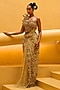 Featuring a cocoon and yellow structured draped skirt saree in shimmer net, chiffon and crochet base. It is paired with a blouse having applique detailing and side metal zip opening. Accentuate it with statement diamond earrings and embellished heels for a glamorous ensemble, ideal for cocktail nights, receptions or red-carpet celebrations.
