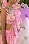 Featuring a neon pink asymmetric draped saree in organza and modal silk satin base with a slit. It is paired with a matching brocade and organza blouse having sweetheart neckline, beads, sequins and crystals detail. Style it with statement earrings and heels for a perfect look.