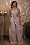 Featuring an orchid tint and pink blouse in sequins georgette base with an attached drape, a halter neck, beads, sequins and cutdana hand embroidery. It is paired with pants having side zipper detail. Accentuate it with statement jewellery and heels for a festive occasion, cocktail or sangeet ceremony.