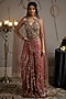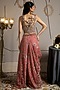 Featuring a taupe and evening rose-colored corset in shimmer net base with side zipper, celestial motifs hand embroidery. It is paired with modal satin pants having concealed zipper detail. Accentuate it with statement jewellery and heels for a wedding, engagement or sangeet ceremony.