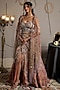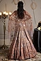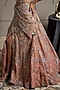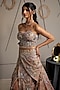 Featuring a taupe lehenga in organza base with motifs, mirror, beads and cutdana hand embroidery. It is paired with an embroidered strapless blouse and a butterfly net dupatta. Accentuate it with statement jewellery and heels for a wedding, engagement or sangeet ceremony.