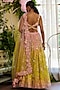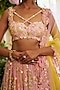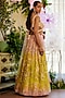 Featuring a yellow lehenga in organza base with floral beads and sequins embroidery. It is paired with a matching embroidered blouse having sweetheart neckline and a butterfly net dupatta.