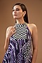 Featuring a purple dress in habutai silk and cotton base with a halter neckline, including abstract and chevron print.