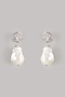 Whit Finish Pearl Drop & Diamond Dangler Earrings In Sterling Silver