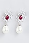 Featuring a pair of white finish dangler earrings studded with pearl and ruby stone, set in 92.5 sterling silver.