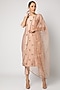Featuring a dusty rose straight kurta in chanderi silk and organza base with zardosi hand embroidery. It is paired with matching pants and a dupatta.