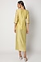 Featuring a mint green short kurta in chanderi silk and satin linen base with zardosi hand embroidery. It is paired with a matching draped skirt and a scarf.