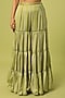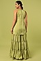 Featuring an olive green kurta in modal satin base with printed stripes, tassel detailing, and hand embroidery. It is paired with matching tiered sharara pants and a georgette dupatta.
