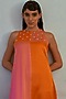 Featuring an orange and pink cowl jumpsuit in tussar satin base with nakshi embroidery. It is paired with tulip pants. Perfect embodiment of style and comfort, making it ideal for special occasions or simply a day out.