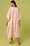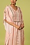 Featuring a pink kaftan in modal satin base with printed stripes, tassel detailing, and hand embroidery.
