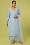 Featuring a powder blue kurta in dupion silk base with pearl jaal embroidery. It is paired with matching palazzo pants and an organza dupatta.