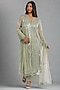 Featuring a mint kurta in net base with a v-neckline, attached satin lining, and hand embroidery. It is paired with silk pants and a net hand embroidered dupatta. Accentuate it with statement earrings and block heels for a festive occasion or family gathering.
