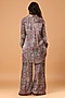 Featuring a multi-colored button-down shirt in crepe satin base with paisley and geometric motifs. It is paired with wide-leg trousers. This co-ord set is comfortable, flowy, and sophisticated, perfect for both casual and dressy occasions.