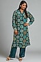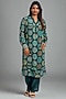 Featuring a peacock blue kurta in tissue base with band collar, machine embroidery and zari patchwork. It is paired with silk straight pants. Accentuate it with statement earrings and block heels for a festive occasion or family gathering.